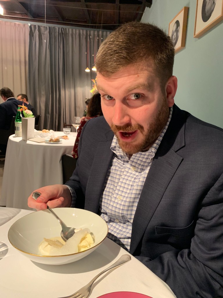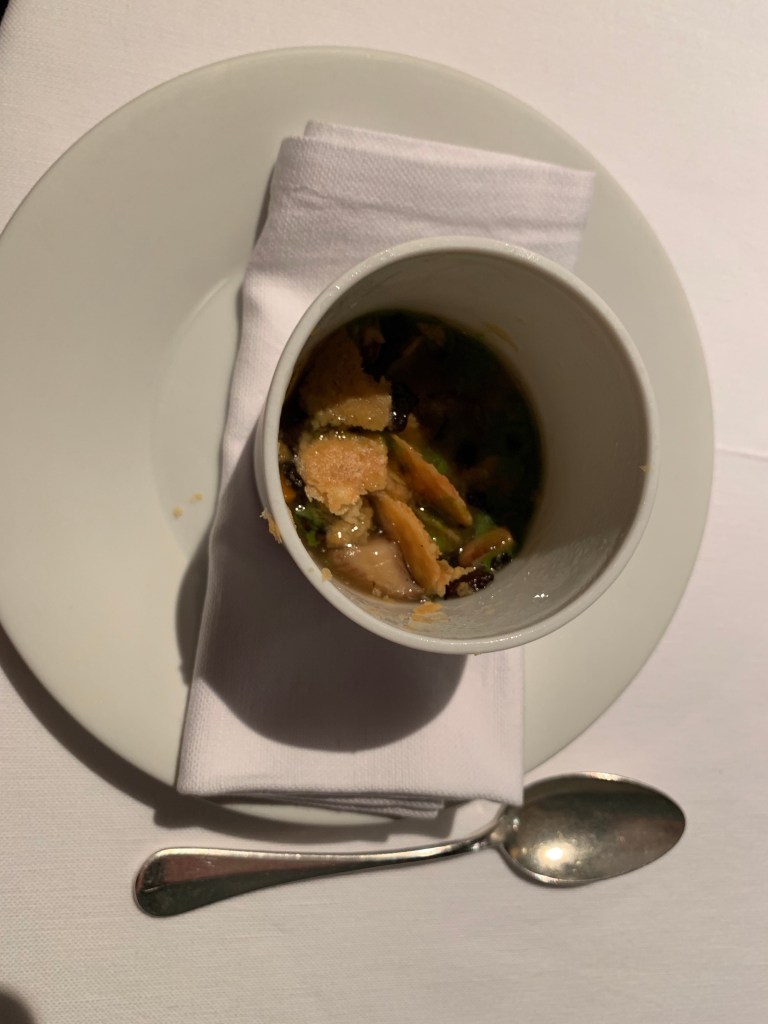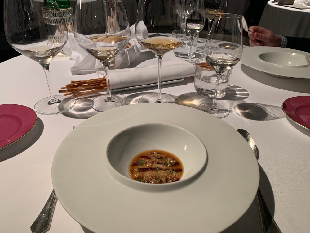 We chose the seasonal tasting menu complete with wine pairings. Each course was presented so beautifully and creatively. You expect for the number one restaurant that the food will be good, but there was so much imagination in each dish, that really took it up a notch. The wine pairings were also so different, but really worked with the dish. Here’s how the dinner went: