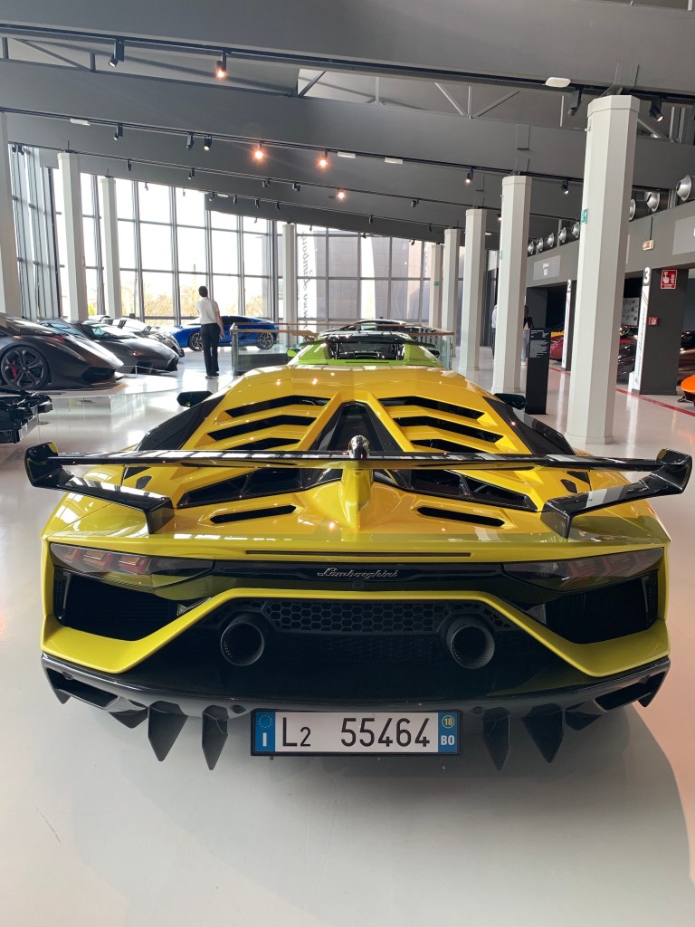 On our way to the airport, we made a pit stop at the Lamborghini museum. I can’t believe I let Tyler talk me into going to two car museums in the same weekend, but I did enjoy this one more than the Ferrari museum. The museum featured a showroom of several Lambos throughout the ages. These cars are just incredible and so super fast. I liked looking at the detail of each and every model.