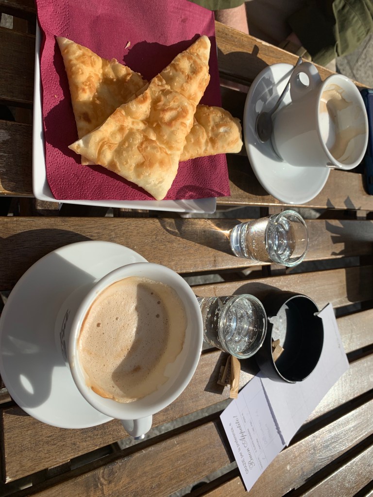 You could really tell how small of a town it was when we stopped to have breakfast. We stopped at a little cafe for cappuccinos and pastries. After successfully ordering a cappuccino, I tried to also order water, to no avail due to the language barrier. Tyler went inside to try to order food and was also turned away. So we enjoyed the cup of jo and went to a different place. We had almost the same issue, but here Tyler was able to point at things from behind the counter and we finally were able to vanquish our hunger.