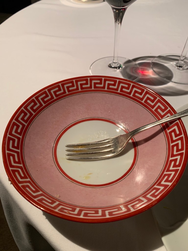I was immediately impressed by the grandness of everything. The staff were very professional. The table scape was immaculate and posh. The decor of the room was rich in color and tasteful. I sat there for a minute soaking it all in.