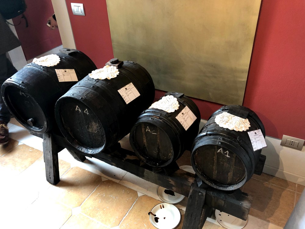 The so called perfect recipe involves aging the vinegar for 100 years, and therefore the barrels are passed down from generation to generation. If you marry into the family, you may end up getting some barrels for a wedding gift. The oldest barrel at this particular Actetaia was from the early 1600s. WoW.