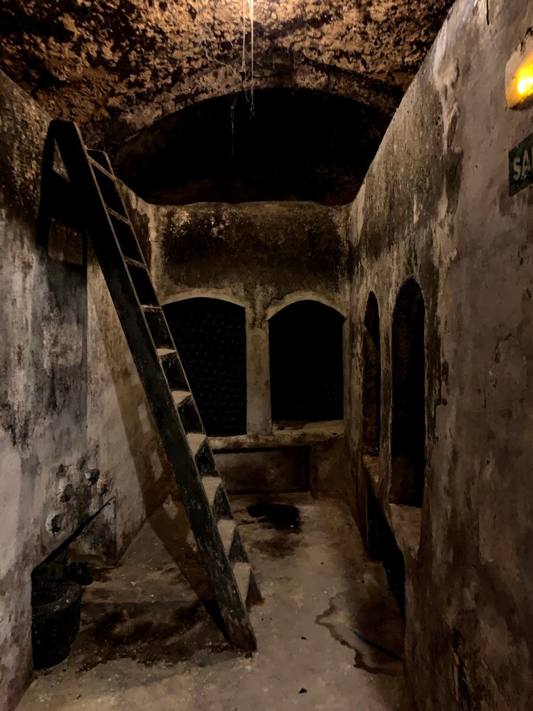 The series of caves were dug in the 1500s to provide protection from frequent wars, but eventually the wars calmed down and the caves were instead used to store wine, with each house sealing off its own part of a cave. The winery we visited had huge concrete vats down in the cave to age the wine before putting it into bottles.
