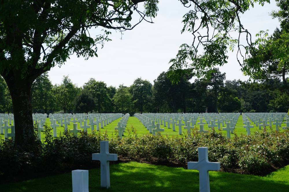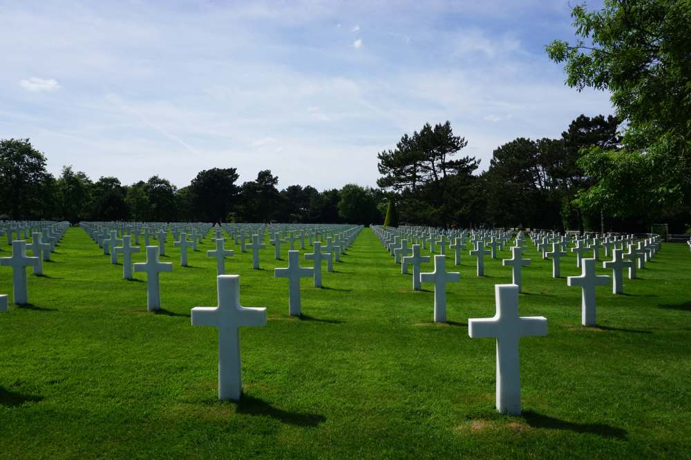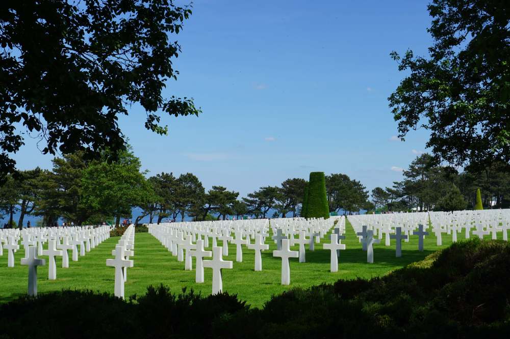 The last stop of the D-Day tour was the North American Cemetery and Memorial, honoring American troops who died in Europe during WWII. This cemetery is the final resting place of almost 10,000 soldiers. Rows and rows of crosses can be seen in a diagonal pattern. The cemetery overlooks the bluffs and sea below. It is a tranquil and beautiful place, and I could feel the somber atmosphere even when it was full of people. I took a moment to honor the soldiers who gave their lives to fight for Europe and soaked in the beauty of the place.