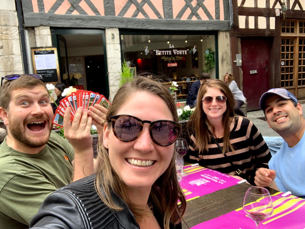 The first stop on our 4 day tour of Normandy was Rouen. This location was partly picked because it was only 5.5 hours drive from Amsterdam and partly because it’s where Joan of Arc was burned at the stake. Other bonuses for this city included some cool churches, lots of cafes, and good wine. Tyler and I arrived on Wednesday evening after the 5.5 hour drive from Amsterdam turned into an 8 hour drive. I went straight to bed, while Tyler checked out the local bar scene.