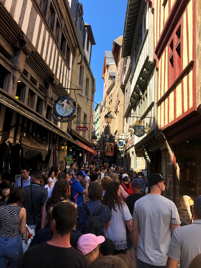 I became fascinated with Mont Saint Michel after reading a WWII book where the main character visited the city. Basically, it is a tiny village that turns into an island depending on the tides. When the tides are high, the village is completely surrounded by waters and used to be unreachable. Today, there is a boardwalk over the waters so you can reach the city whenever you want. The island kind of looks like a fortress with high walls around the outside and steep steps throughout the village to the abbey that rests at the top.