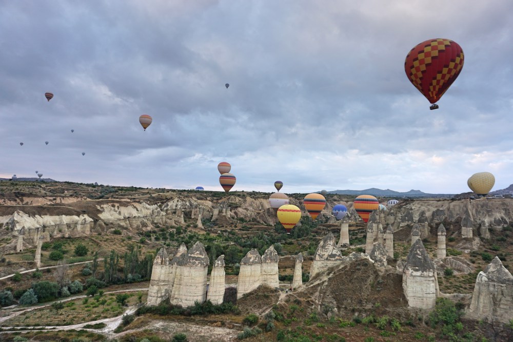 It was amazing to just sit and watch the sunrise and balloons, but it was all over by about 6:30am so we went back to bed for a few hours. I’m glad that we had two mornings in Cappadocia, because it’s rare that you get two mornings in a row that the balloons can fly. I really enjoyed taking the balloon flight and also looking at the balloons from below.
