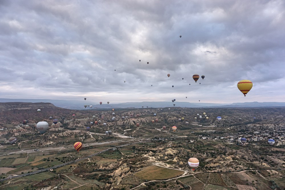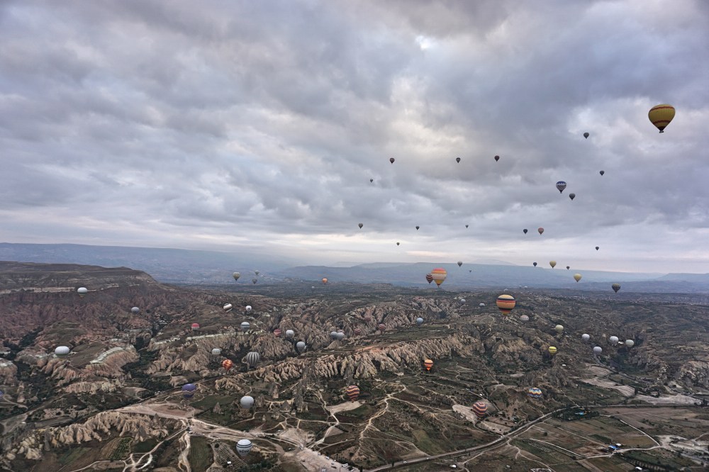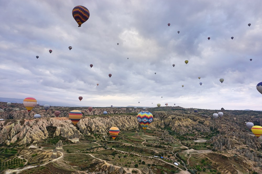 We slowly started lifting up in the air and heading towards the Love Valley. I was surprised by how smooth the ride was. At first, we didn’t go very high, we were just gliding along through the peaks of the Love Valley. We started to pick up height as we crossed over to the Red Valley. There were so many balloons all around us as we lifted up. It was incredible to see all of the different ones. Although we didn’t get to see the sunrise from the balloon as planned, I think it may have been even better because there was enough daylight to see our surroundings. We took in the views and were in awe.