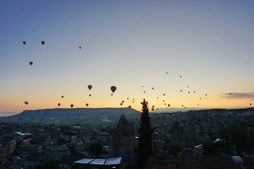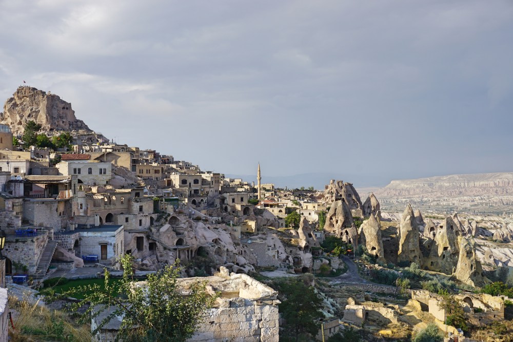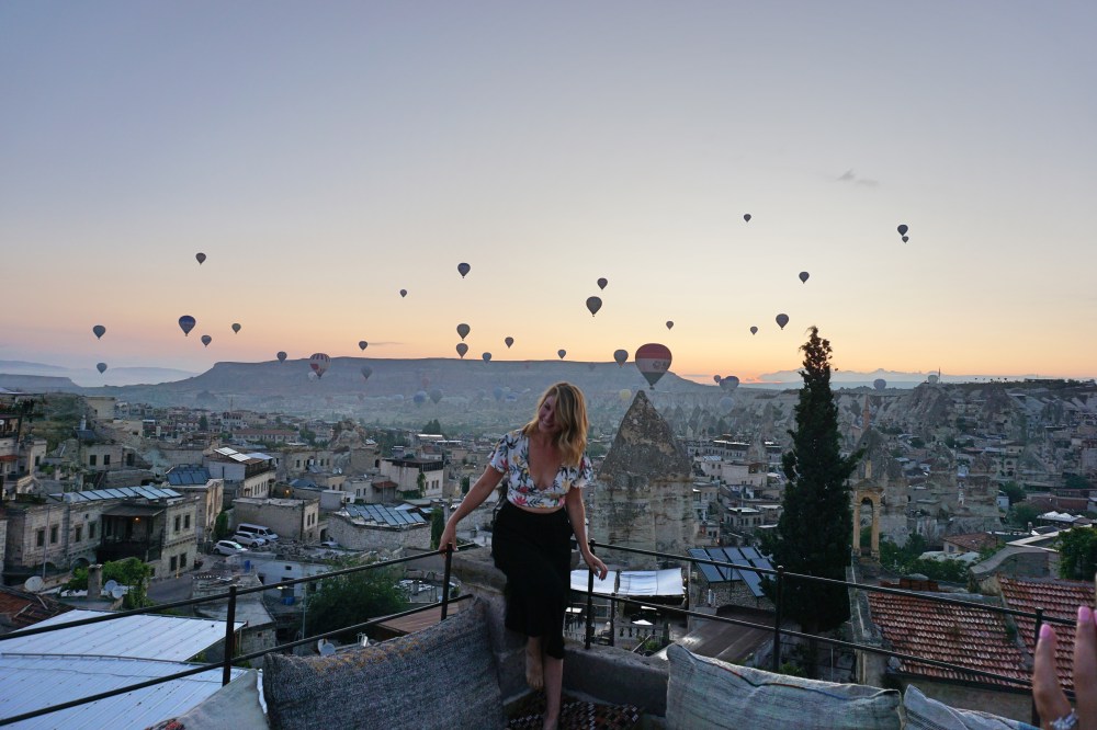 Because of the flight sitch, we had a really long overnight layover in Istanbul. We slept in a hotel connected to the airport, which was little more than a pod. Because we were flying locally, we could just roll into our terminal with ease the next morning. The first leg of our journey started in the Cappadocia region of Turkey. We arrived into the very small Nevsehir airport in the afternoon. Our hotel had arranged a transfer for us, but we had to wait for another flight to get in before we could shuttle away. The first leg of the trip consisted of a lot of sitting, waiting. Finally, we headed towards the Sultan Caves Hotel. I would encourage you to look up this hotel on Instagram, because it is super ‘Grammable. A cute hotel overlooking the city, with amazing views of the fairy chimneys, we were excited upon our arrival.