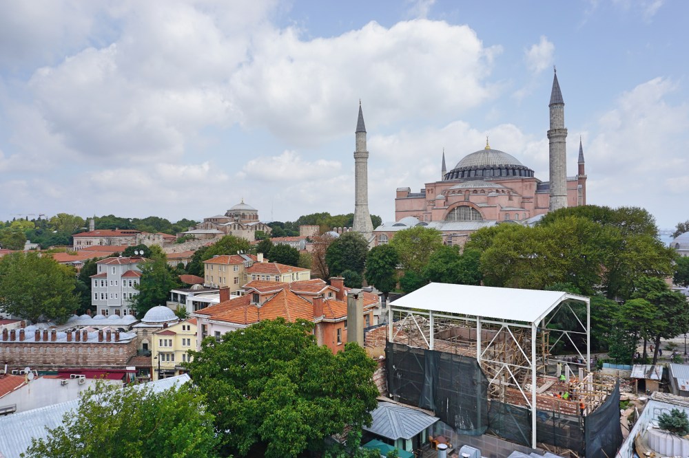 As you can probably imagine, Turkey in August is sweltering. We were so sweaty, especially since we had become accustomed to the mild Amsterdam summers. After the walking tour, we were in need of a drink, and chose Panorama 360 for some good views and cocktails. We could see the Hagia Sophia and Blue Mosque perfectly from our vantage point.
