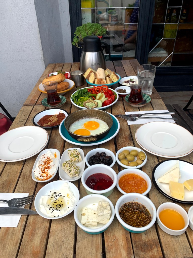 Turkish breakfast ranks highly on my list of favorite food experiences. We didn’t have much time before catching our 10:45am free walking tour, so we popped into a cute little place right by our hotel called Kemankes Cafe. The breakfast was amazing and included eggs, breads, cheeses, tomatoes, cucumbers, peppers, jams, honey, tahini, and I’m sure I’ve forgotten some other delicious things.
