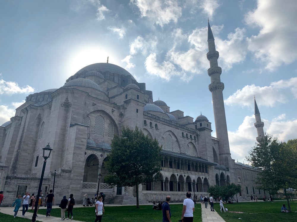We made a detour after seeing the bazaar to another mosque, the Suleymaniye Mosque, which was my favorite mosque that we visited. It is set up on top of a hill and has a great view of the Golden Horn. The outside of the mosque is majestic with the domes and minirets. We thought it was already closed for the day, but they were letting visitors in during prayer time. We removed our shoes and walked in. The men were praying in the front of the mosque, and the women and children were in a small section at the back which I found interesting. It felt very peaceful inside.